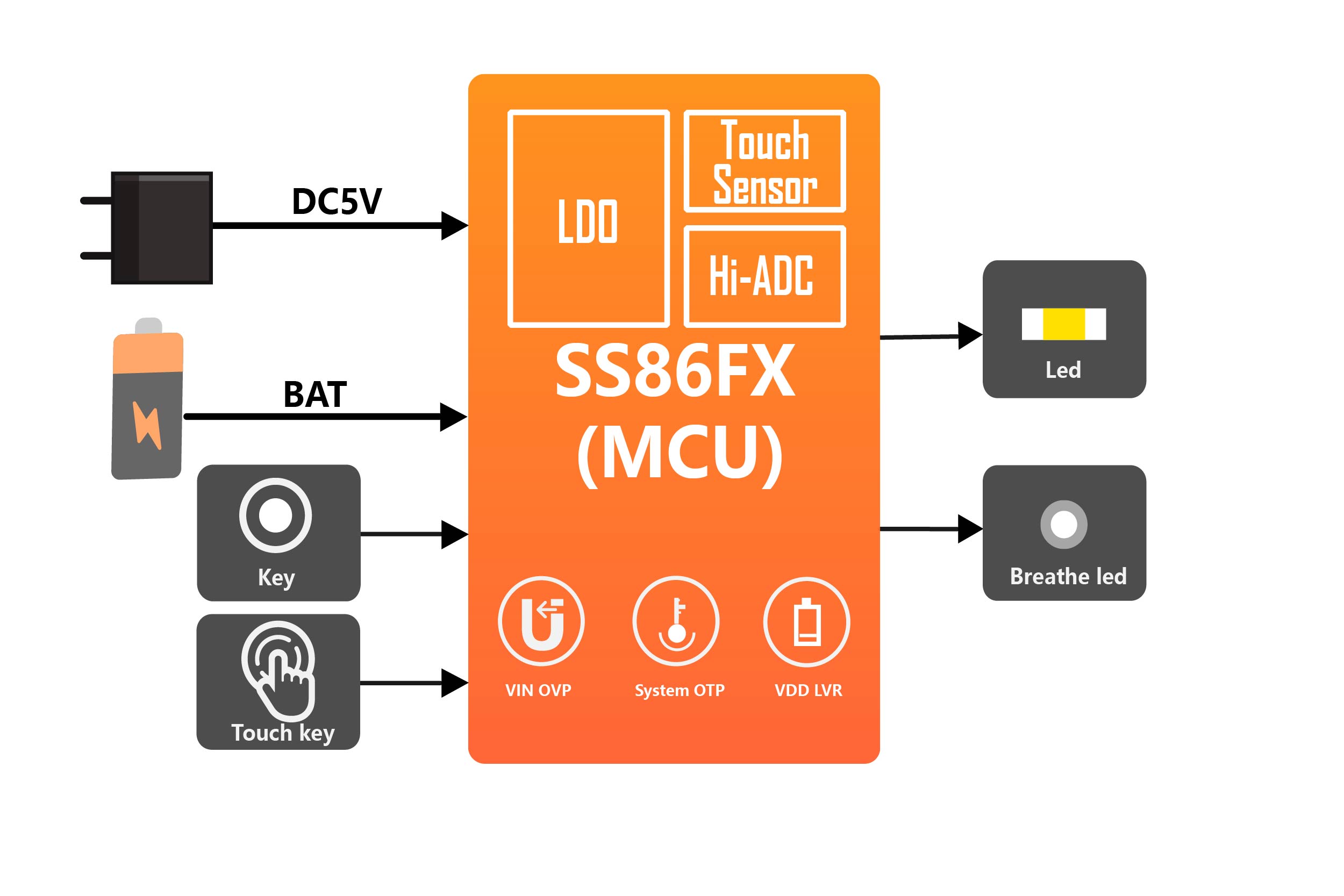 SS86FX是昇生微电子(Sinhmicro)研发的集成了电源管理、电机控制功能及触摸检测功能的8位低功耗微控制器,拥有清晰的MCU存储架构,完备的系统级控制,并且内置丰富的接口功能,灵活的配置模式和不同的低功耗选项。该款产品主要应用于便携式智能电子设备,较小的芯片面积,带来精简的外围成本,整体性能优越,开发灵活便捷。