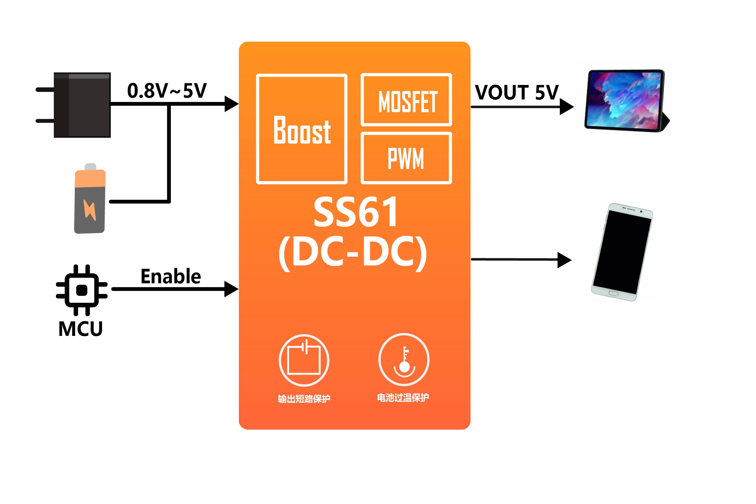 SS61是一种具有超低静态电流的高效同步升压转换器。转换效率高,外部元件少,方案占用面积小,支持短路保护,输出电压可调节,是物联网应用等需要低待机功率和紧凑板尺寸解决方案的理想选择。