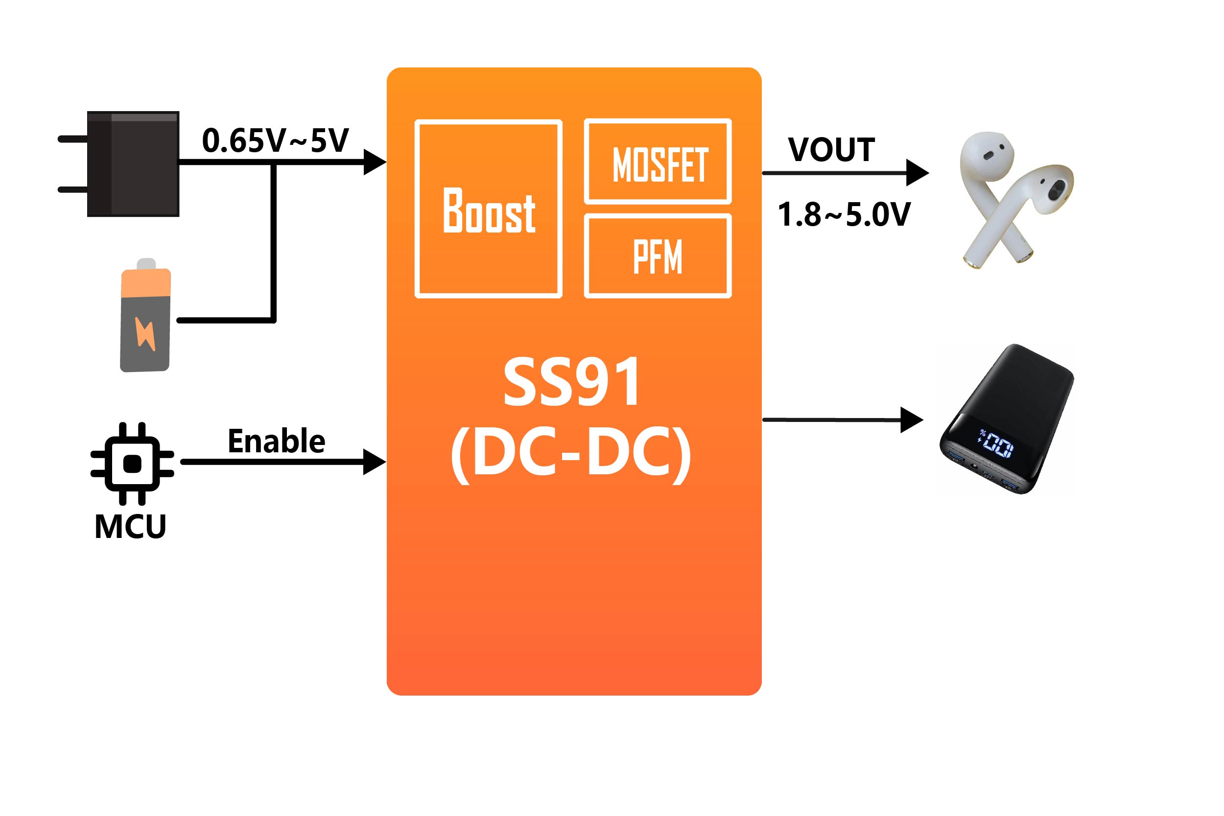 ◼ 宽输入电压范围:0.65V~5.0V