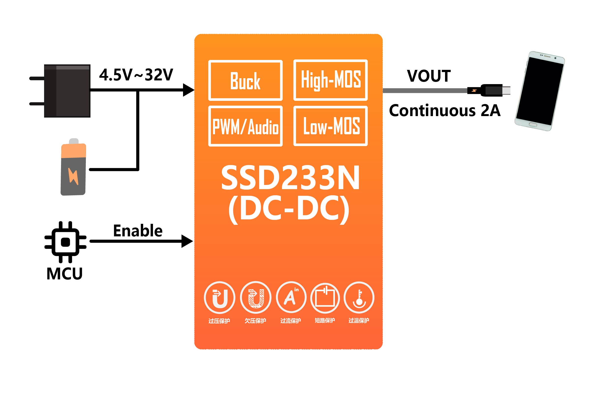 ◼ 2A 连续输出电流