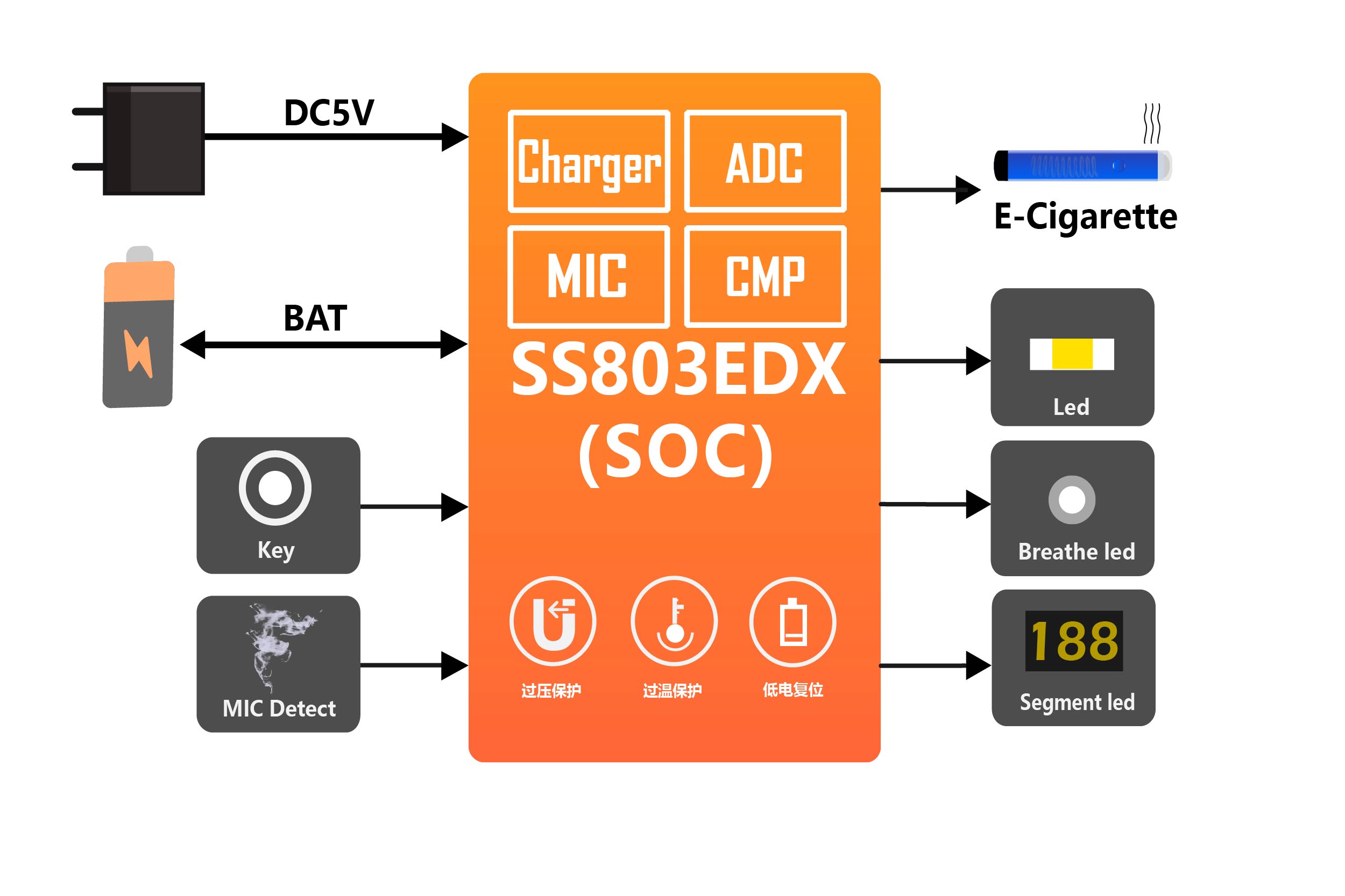 SS803EDX是昇生微电子(Sinhmicro)研发的集成了电子烟咪头检测模块、电子烟发热丝阻值检测模块和短路保护功能的电子烟专用MCU。