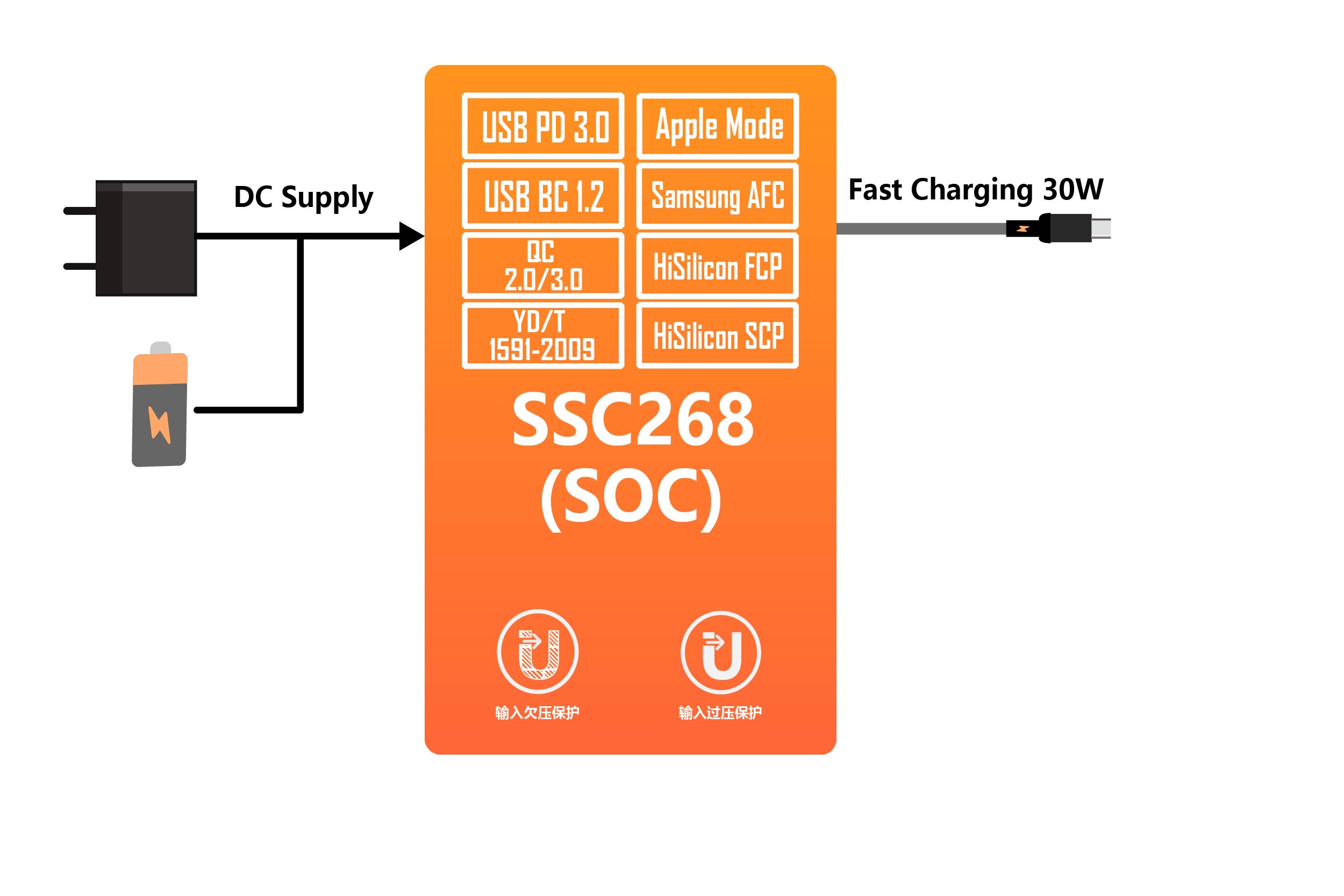 支持USB PD 3.0 和 QC 3.0 的 30W 快充控制器